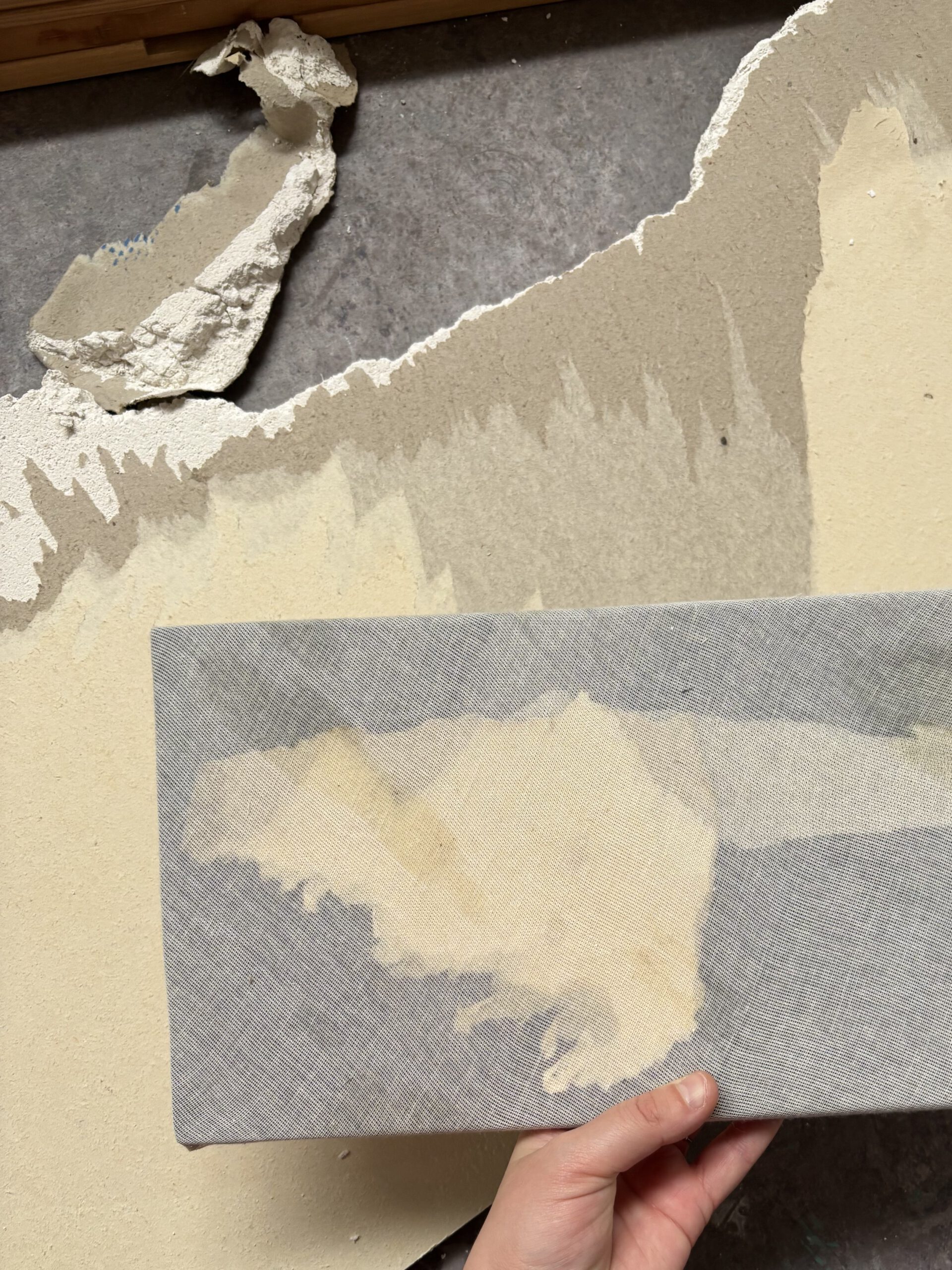 made of paper on plasterboard found at ENCI, on wood, with multiple layers of fabric – okt 2025