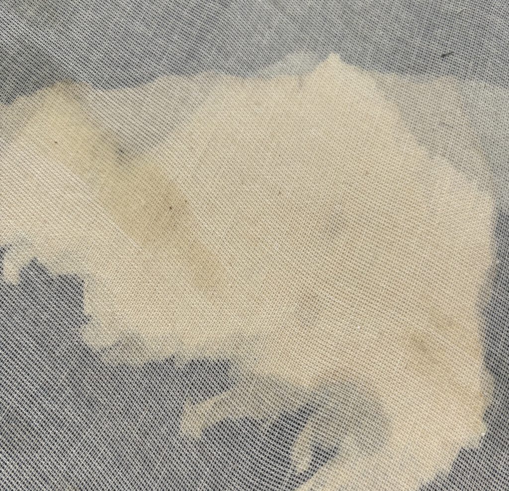 two layers of fabric, oil, acrylic and bister, on aluminium frame, the top layer of fabric dissolved in paint